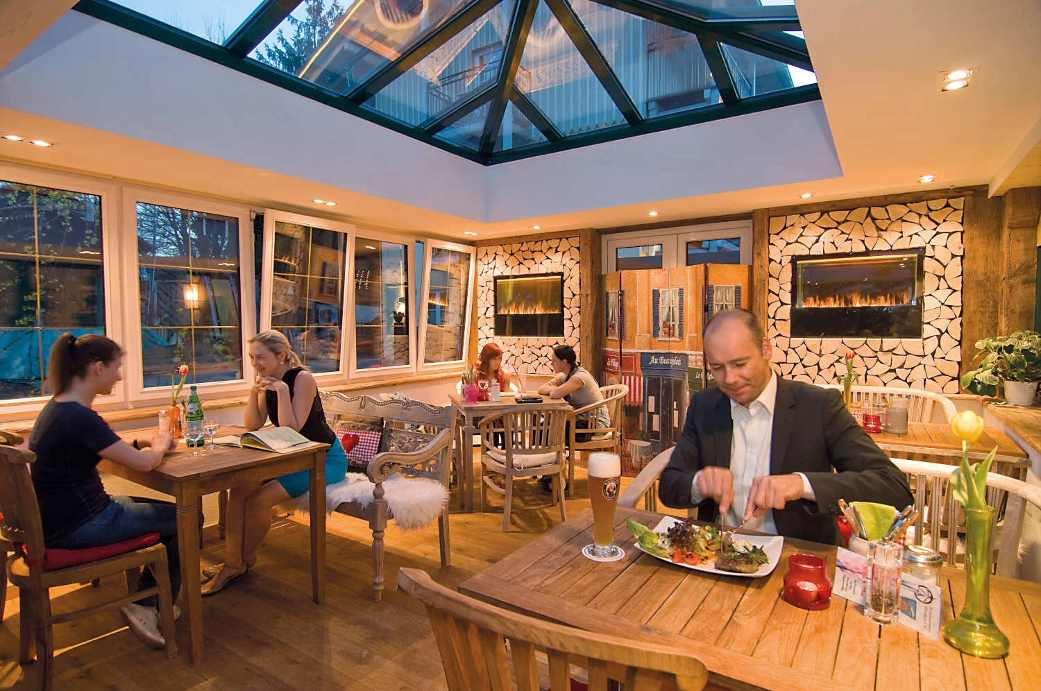 Wir verwöhnen Sie durchgehend bis 21.30 Uhr mit unseren Landhaus Spezialitäten aus der Küche & unserer Bar. Wir haben täglich bis 22.00 Uhr geöffnet. Kommen Sie allein oder in Gesellschaft und suchen sich ein gemütliches Plätzchen in unserem schönen Wintergarten, im heimeligen Cafébereich oder in unserem gemütlichen Biergarten – nehmen Sie sich eine Auszeit vom Alltag.